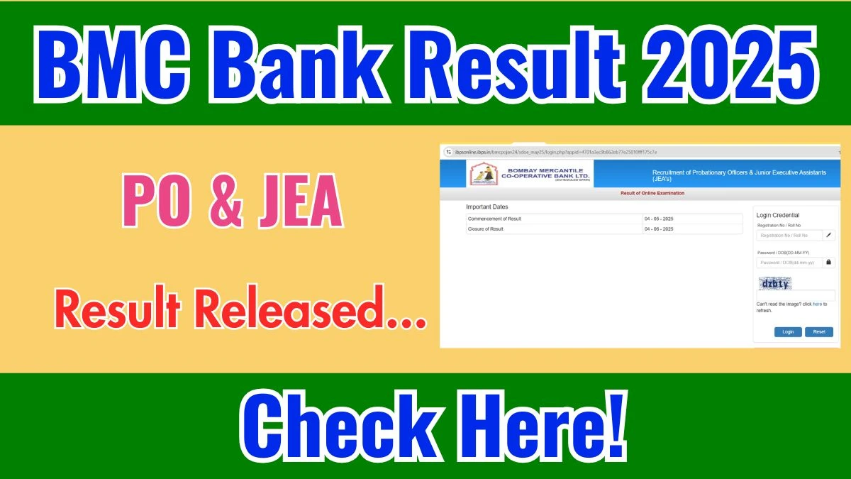 BMC Bank PO & JEA Result 2025 Released: The Bombay Mercantile Co-operative Bank Ltd (BMC Bank) has officially declared the…