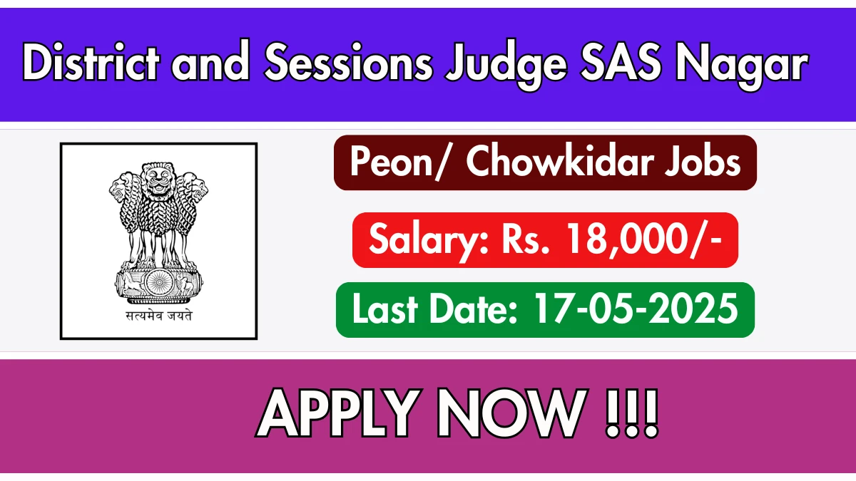The District and Sessions Judge SAS Nagar has released an official notification for the recruitment of 34 Peon/ Chowkidar posts.…