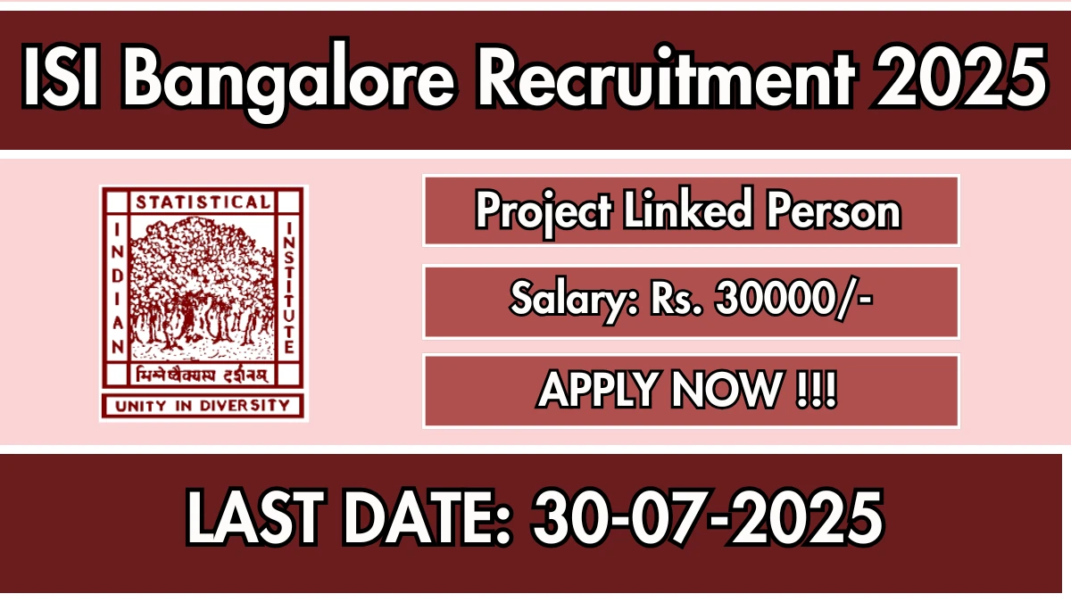 ISI Bangalore Recruitment 2025 The Indian Statitical Institute Bangalore (ISI Bangalore) Recruitment 2025 for 01 posts of Project Linked Person.…