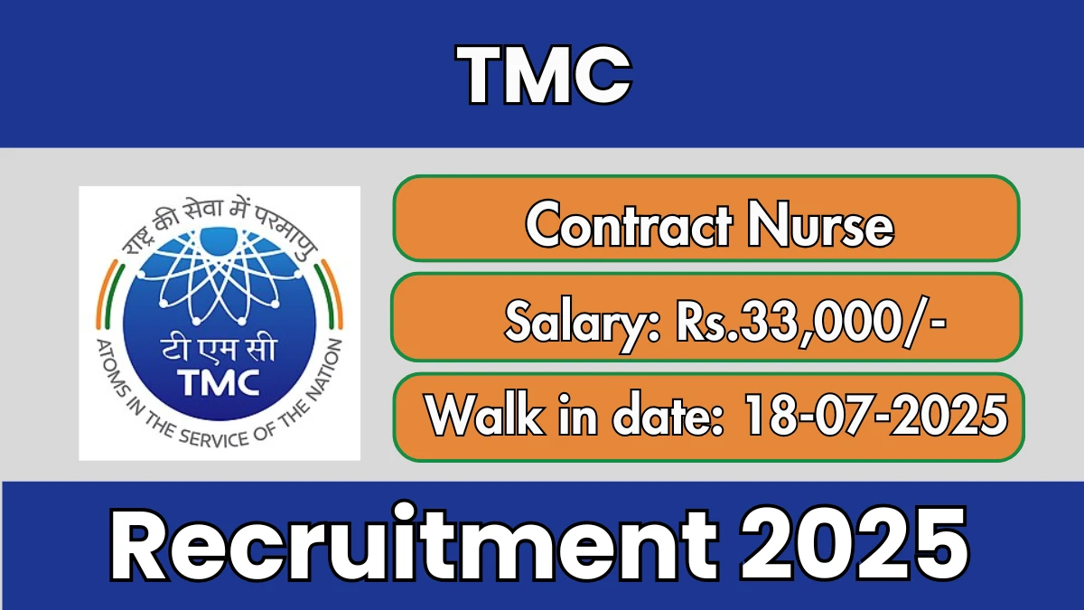 TMC Recruitment 2025 Tata Memorial Centre (TMC) Recruitment 2025 for 30 posts of Contract Nurse. Candidates with B.Sc, Diploma, GNM…