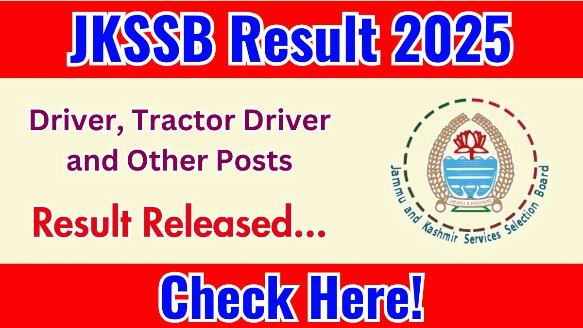 JKSSB Driver, Tractor Driver and Other Posts Result 2025 OUT
