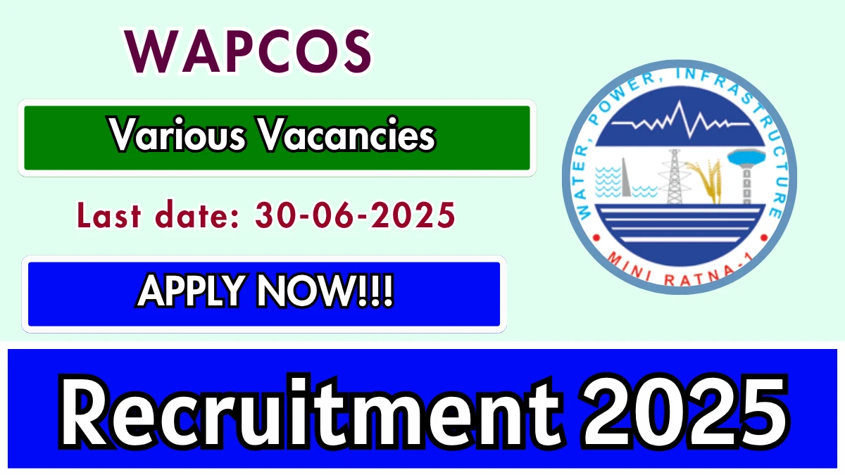 The Water and Power Consultancy Services (WAPCOS) Recruitment 2025 for 39 posts of Office Assistant, Office Manager and Other. Candidates with B.Tech/B.E, Diploma, M.Sc, M.E/M.Tech Can Apply Offline. The Offline application closes on 30-06-2025. The candidate shall apply Offline through WAPCOS website, wapcos.co.in.